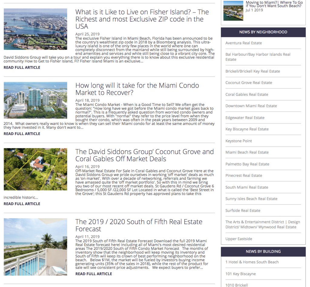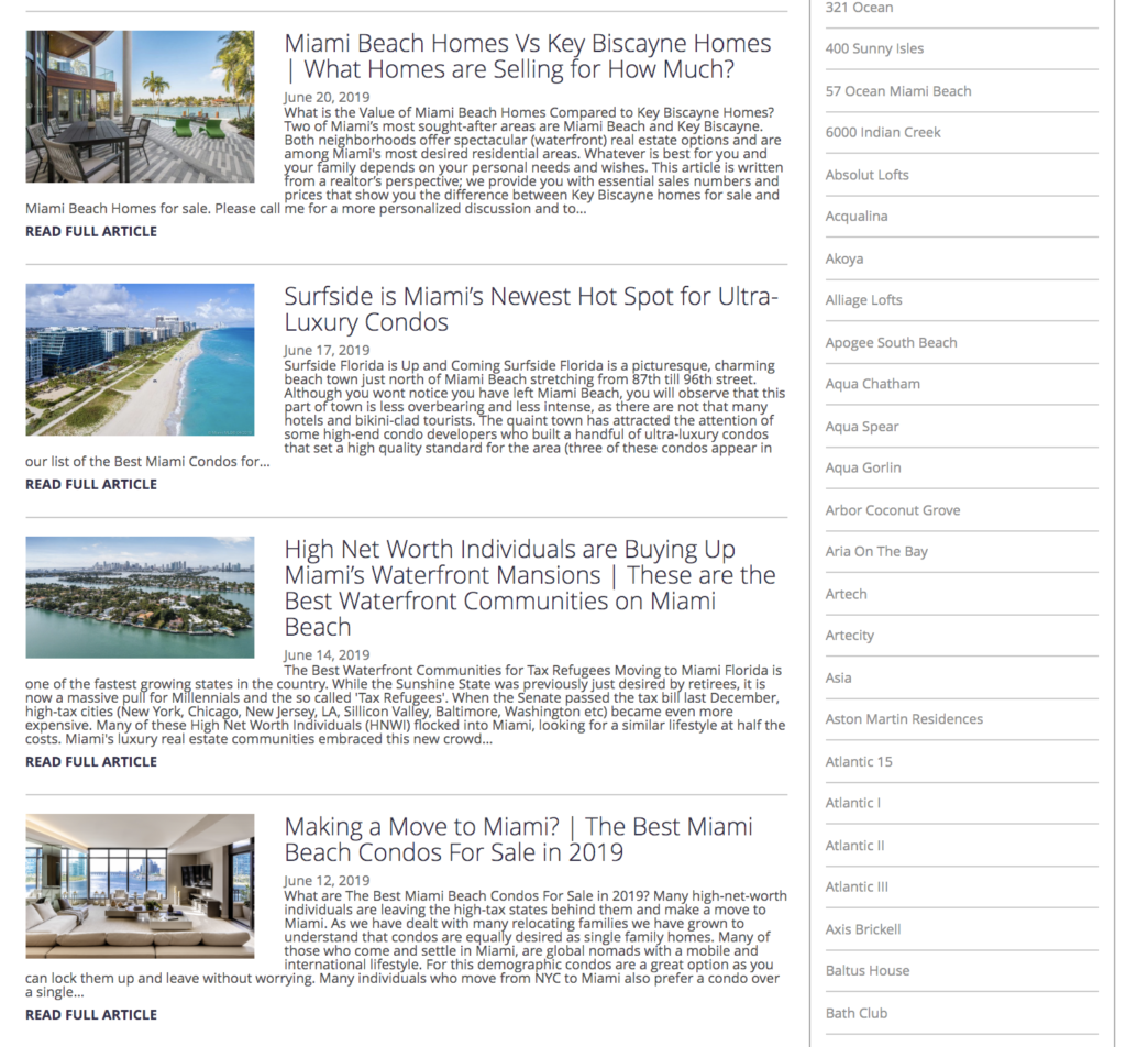 Our start was simple and we have later evolved into writing more in-depth, analytics blogs. We then decided to go bigger and we ventured out in real estate reports and forecasts. Our reports focus on niche markets as we look at specific neighborhoods and specific price ranges. After I started writing my blogs and published my first real estate report my website started to rank higher for Miami real estate terms and I got several phone calls per week from potential investors.